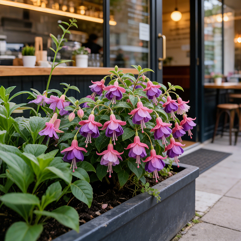 Tyto elegantní květiny, známé svými kaskádovitými květy ve tvaru zvonku a bohatě vrstvenými okvětními lístky, kvetou jako živé lustry – dodávají jemnost, barvu a klid každé zahradě nebo terase.